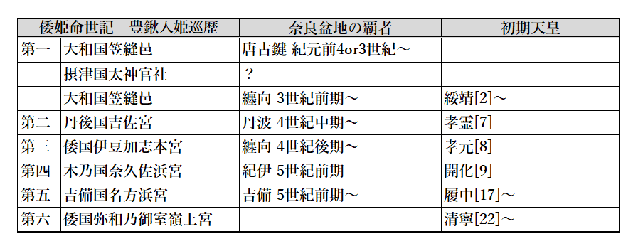 倭姫命世記の豊鍬入姫巡歴は、古代における奈良盆地の覇者を列記している。