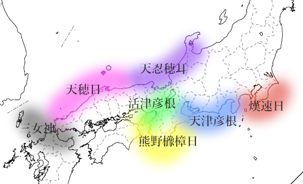 悩むところは、活津彦根が瀬戸内をカバーするか? はたまた瀬戸内は月読の領分か?