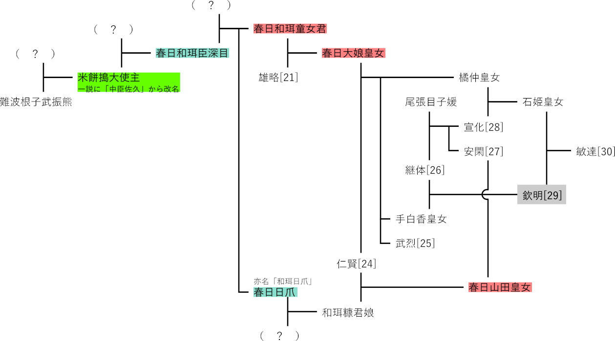 比売神の正体は和珥氏の后妃、雄略[21]妃の春日和珥童女君・仁賢[24]皇后の春日大娘皇女・安閑[27]皇后の春日山田皇女だろう。